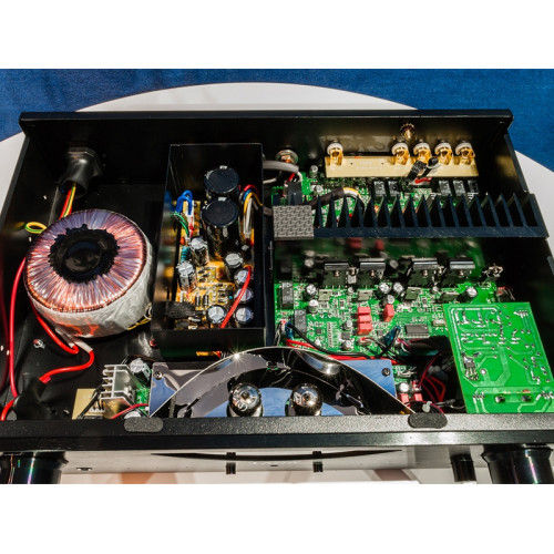 Високопродуктивний гібридний інтегрований підсилювач з MM Phono входом і 24-бітовим ЦАПом: дві електровакуумні лампи 6N3 в секції попереднього підсилювача та чотири транзистори Toshiba на виході. Це рішення забезпечує дуже теплий, лінійний та реалістичний звук з високою динамікою звуку.