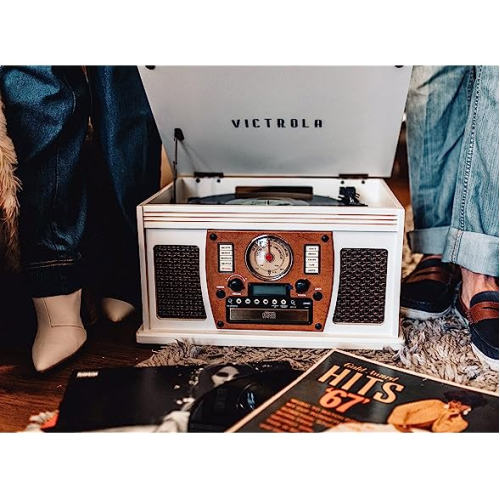 Ретро аудіо система - програвач вінілових платівок, AM/FM радіо, Bluetooth, CD-плеєр, касетний магнітофон, вбудовані динаміки. Забезпечує запис вінілових дисків MP3-форматі на комп'ютер РС і МАС. Корпус системи з дерева.