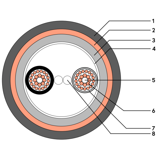Екранування кабелю: Двійна оболонка з ПВХ; Алюминиевая фольга; Плетеный шар чистої меди