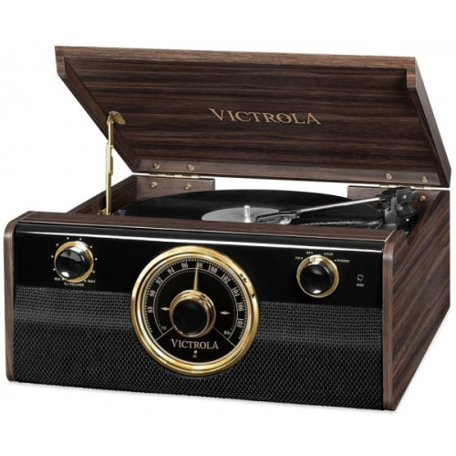 Ретро стиль 50-х років.Музичний центр 4-в-1: Bluetooth, додатковий аудіо вхід,3-х швидкісний програвач вінілових платівок,радіо. Класичне FM-радіо з аналоговим тюнером, світлодіодним підсвічуванням по колу, вбудовані стерео-динаміки.