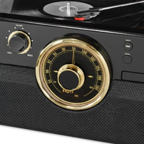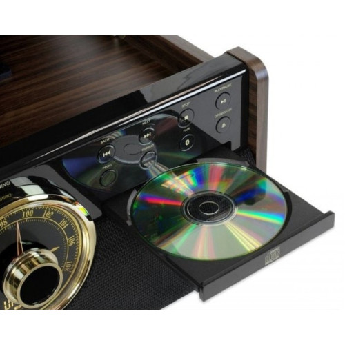 Ретро стиль 50-х років.6-в-1: Bluetooth, CD-плеєр, додатковий вхід 3,5 мм, 3-х швидкісний програвач вінілових платівок, касетний плеєр, радіо. Класичне FM-радіо з аналоговим тюнером, світлодіодним підсвічуванням по колу, вбудовані стерео-динаміки.